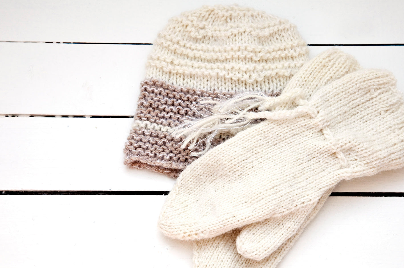 Grovstickad mössa och vantar
