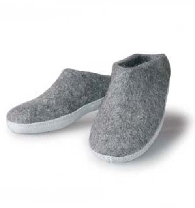 Filtade tofflor i 100% ull med lädersula.